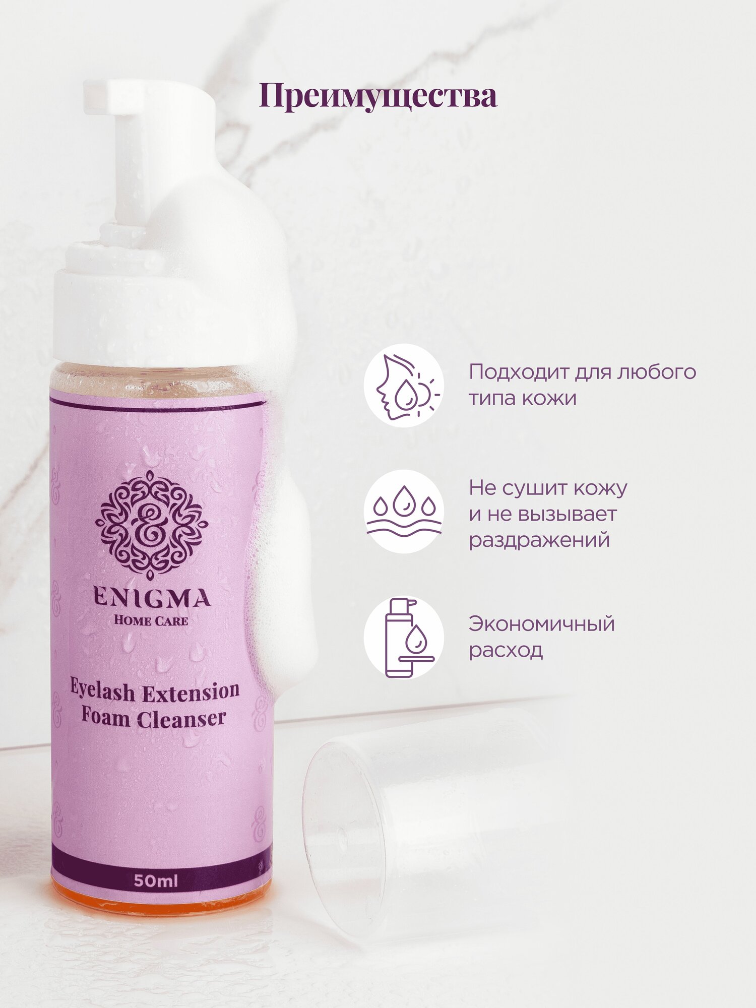 Очищающая пенка для наращенных ресниц ENIGMA (Энигма) Home Care 50 мл интересное: