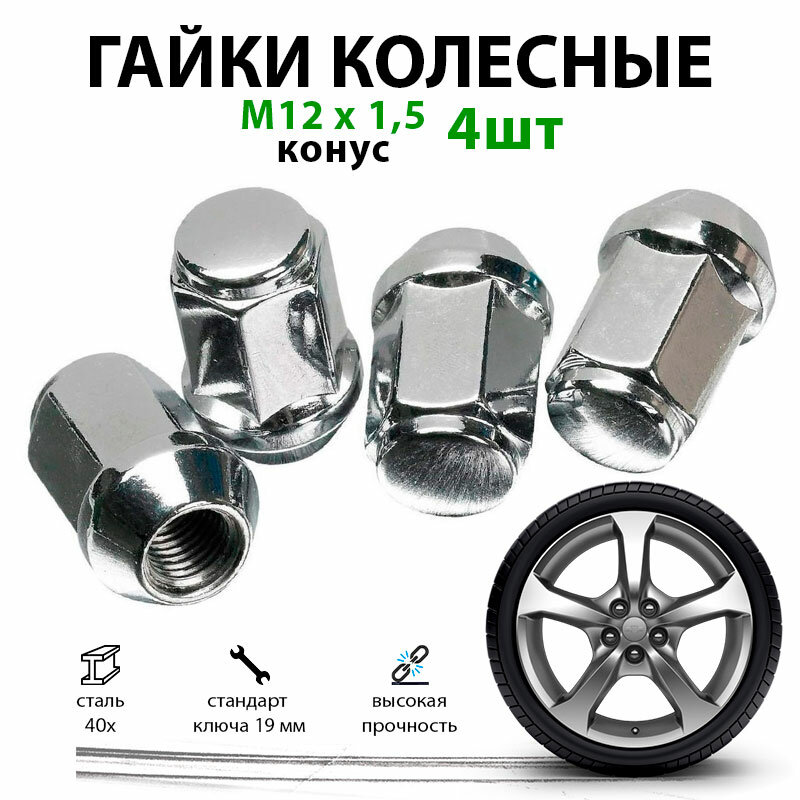 Гайки колесные хром М12*1.5 под ключ 19 конус высота 34 мм - 4 шт. интересное: