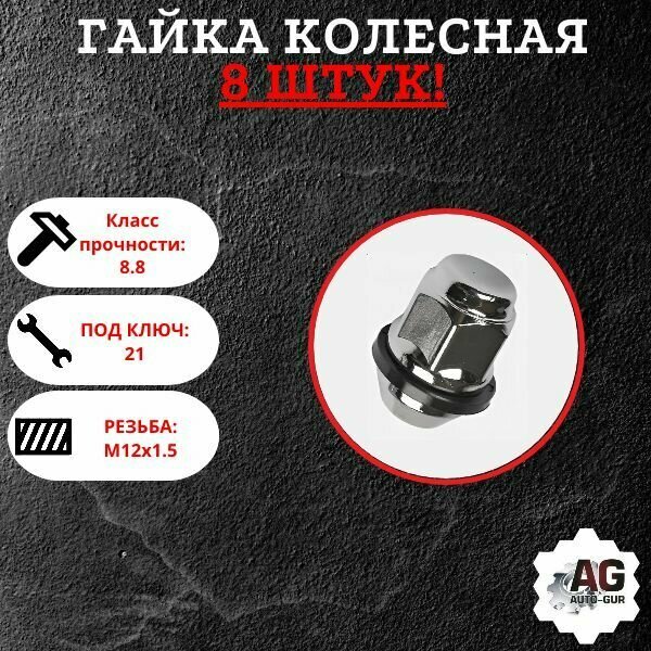Купить Гайка колёсная 12х1.5х34 СН 21 хундай, киа ориг 901445HU (Hundai) 8 штук