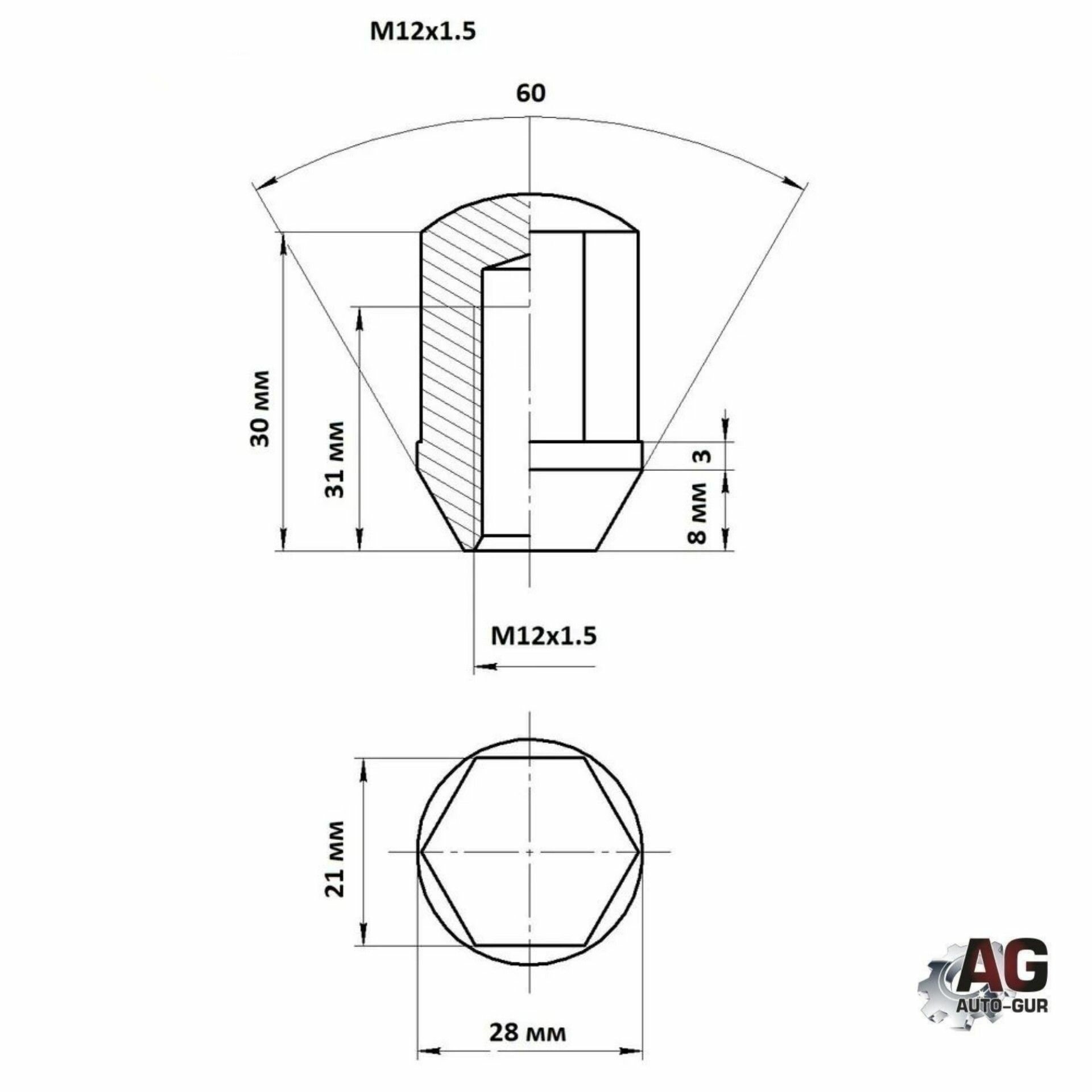 СохранитьГайка колёсная 12х1.5х34 СН 21 хундай, киа ориг 901445HU (Hundai) 8 штук интересное: