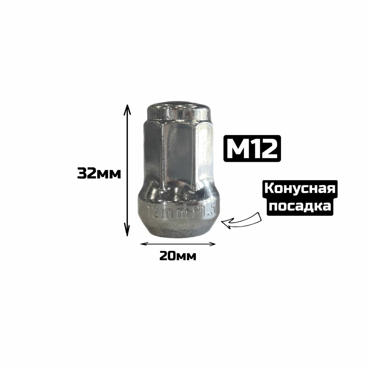 Купить Гайки-секретки конусные для узких колодцев М12 1.5 хром (20шт)
