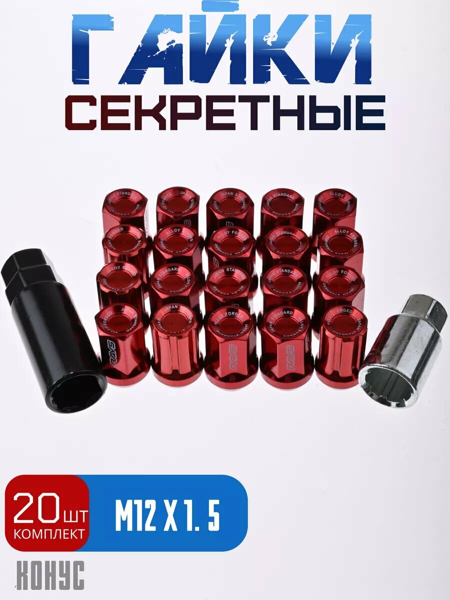 Секретки, гайки секретные RAYS М12х1,5 20 шт, высота 32 мм, красные интересное: