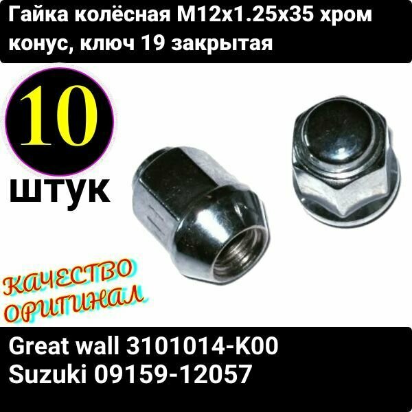 Гайка колёсная М12x1.25x35 (10 штук) хром конус, ключ 19 закрытая интересное: