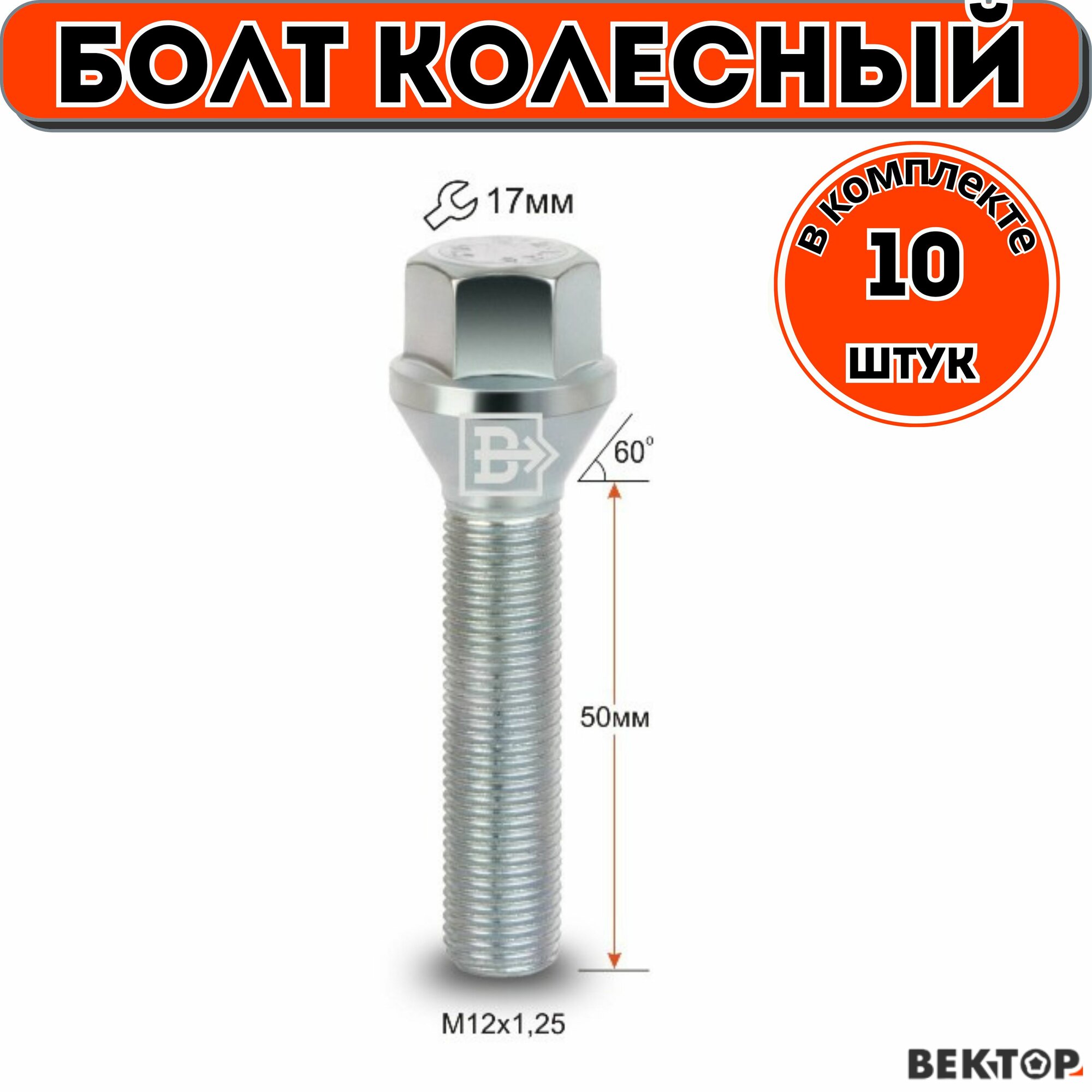 Болт колесный M12X1,25 50мм, Цинк, Конус с выступом, ключ 17 мм, 10 шт интересное: