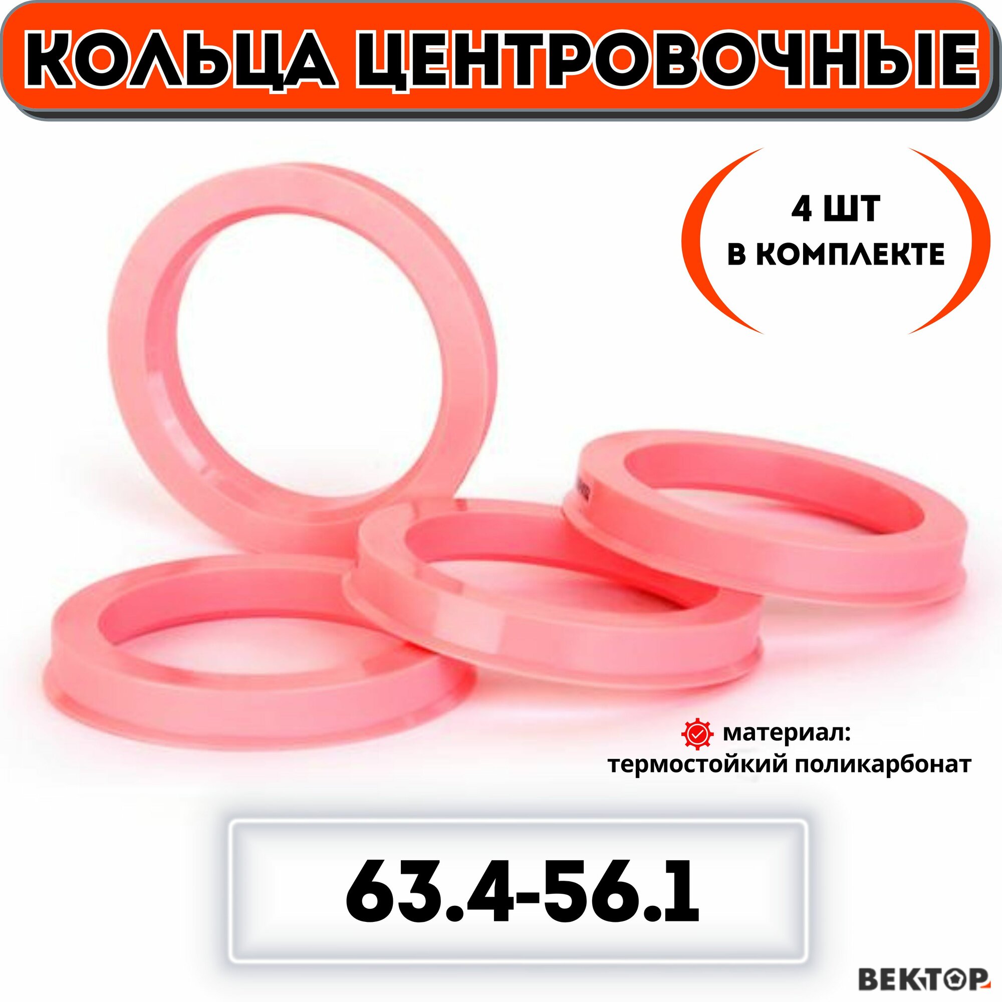 Кольца центровочные для автомобильных дисков 63,4-56,1 "вектор" (к-т 4 шт.) интересное: