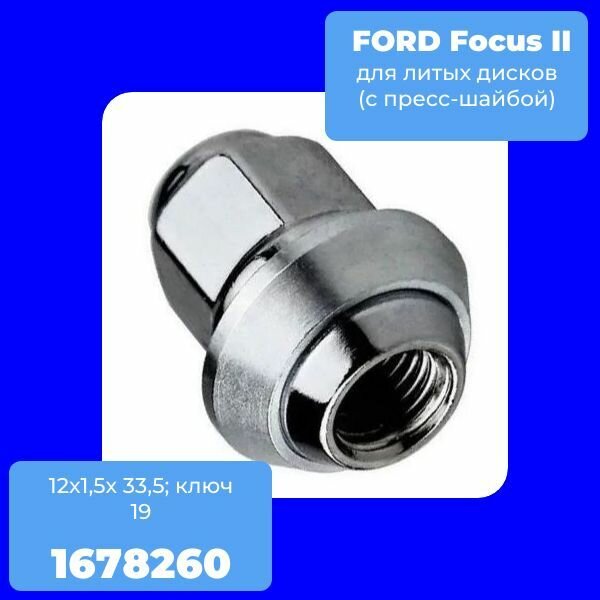 Гайка крепления колеса FORD Focus , фокус II для литых дисков (с пресс-шайбой) 12х1,5х 33,5; ключ 19 5 шт
