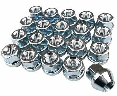 Гайка колесная открытая М14*1,5, высота гайки H-21, прижим под конус, ключ на 19, покрытие цинк. 20 штук
