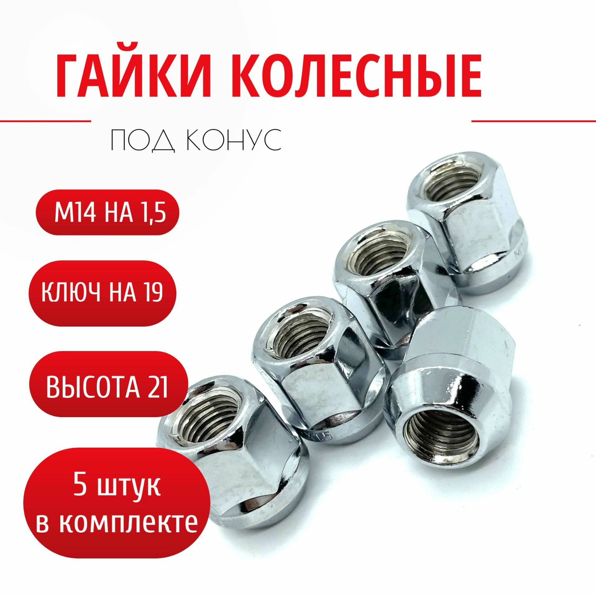 Гайка колесная открытая М14*1,5, высота гайки H-21, прижим под конус, ключ на 19, покрытие цинк интересное:
