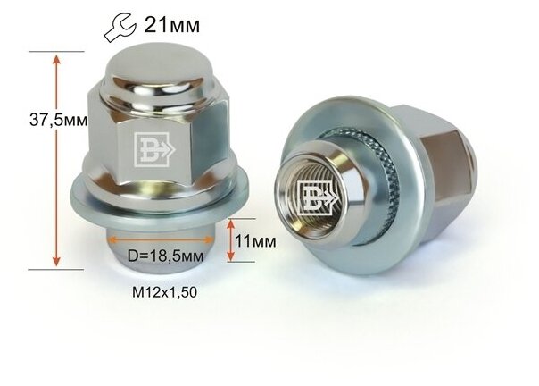 Гайка колесная M12X1,50 Хром, высота 37,5 мм, Прессшайба, 10 шт интересное: