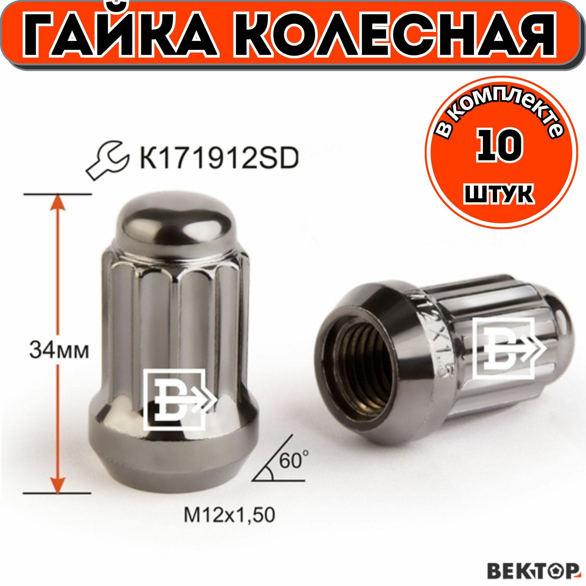 Гайка колесная M12X1,50 Дымчатый хром, высота 33мм, 12 луч,10 шт интересное: