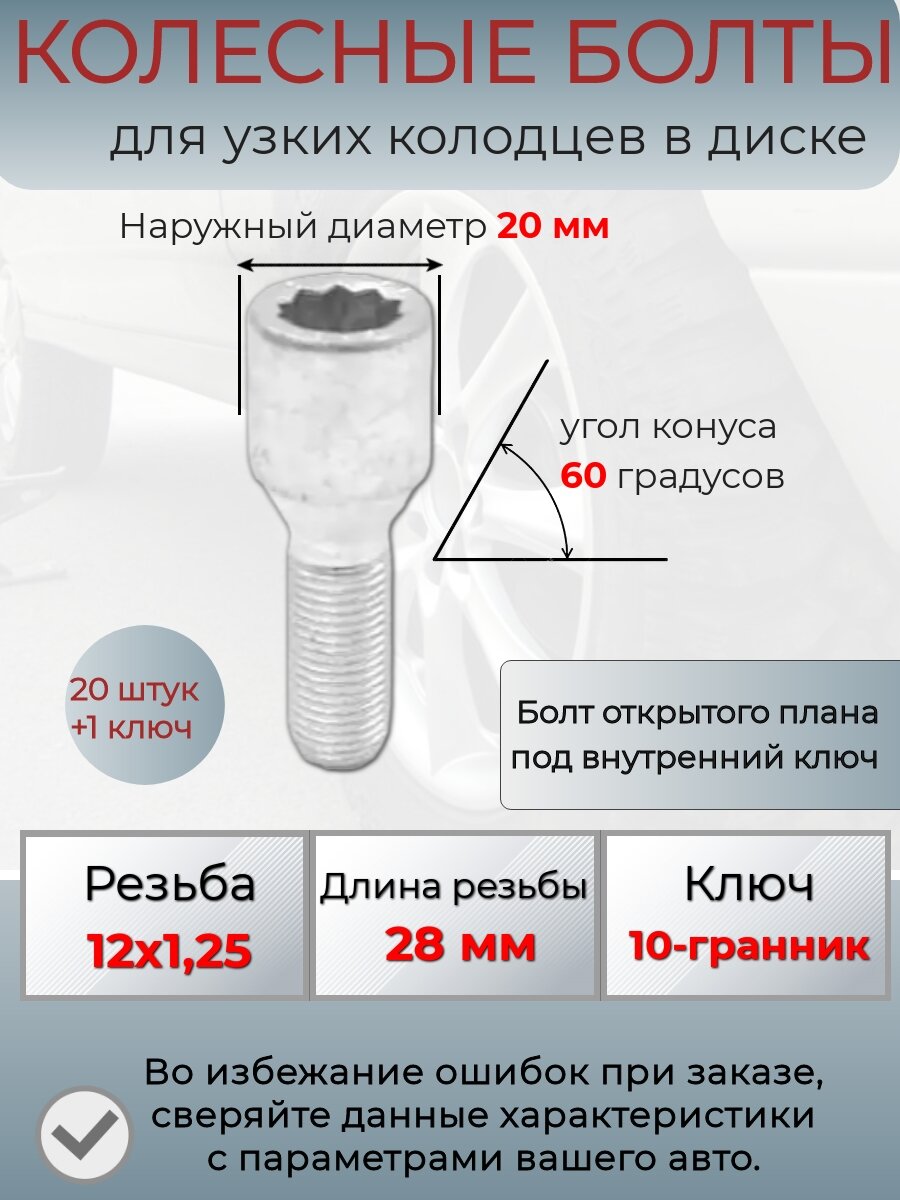 Колесные болты для узких колодцев, узкие болты под внутренний ключ, резьба 12х1,25 интересное: