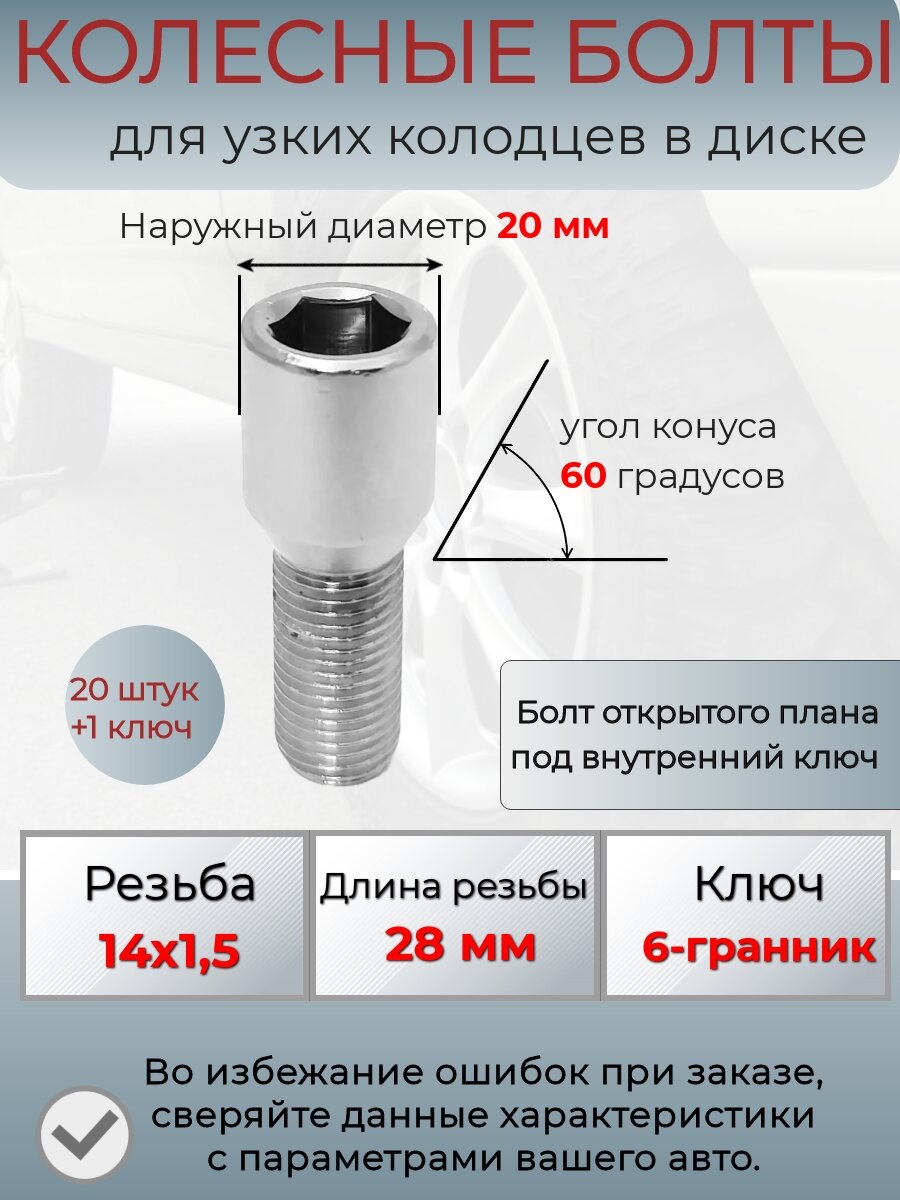 Колесные болты для узких колодцев, узкие болты под внутренний ключ, резьба 14х1,5 интересное: