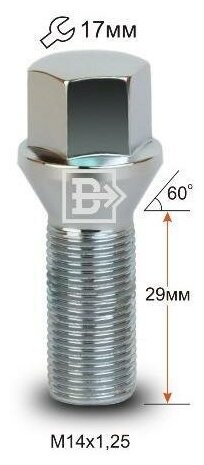 Болт колесный M14x1,25 28мм, Конус, ключ 17, 10 шт интересное: