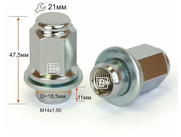 Гайка колесная M14X1,50 Хром, высота 47 мм, Прессшайба, 10 шт интересное: