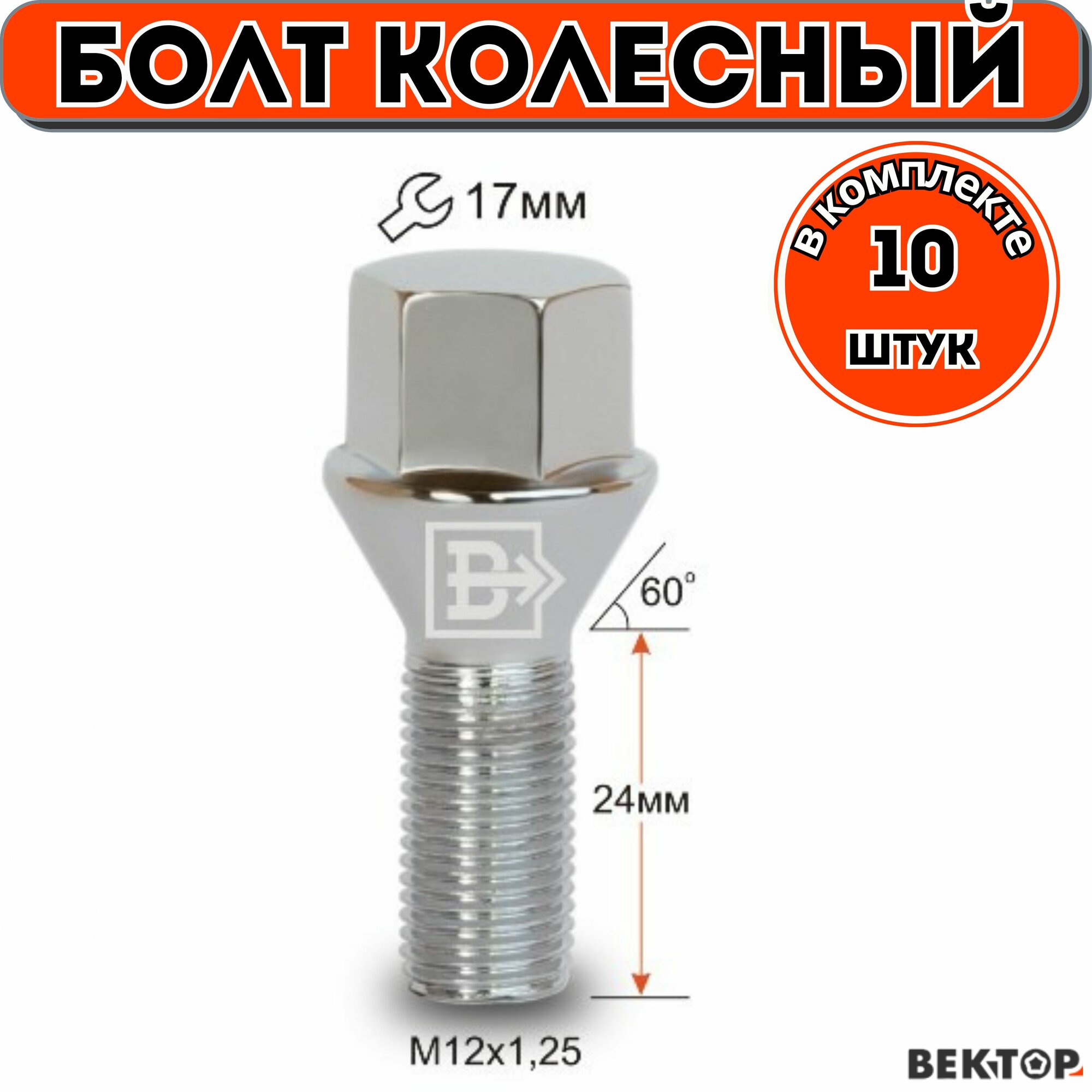 Купить Болты колесные M12x1,25 24мм, конус, ключ 17, 10 шт
