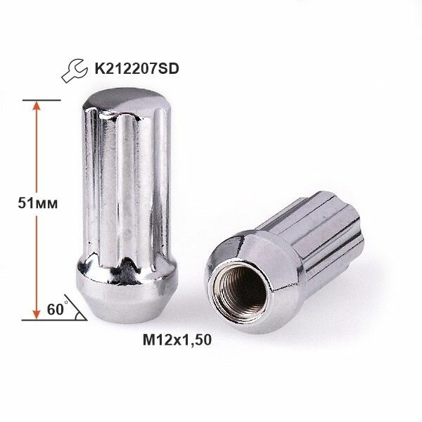 Гайка колесная M12X1,50 Хром, высота 51 мм, Конус с выступом, закрытая, 10 шт интересное:
