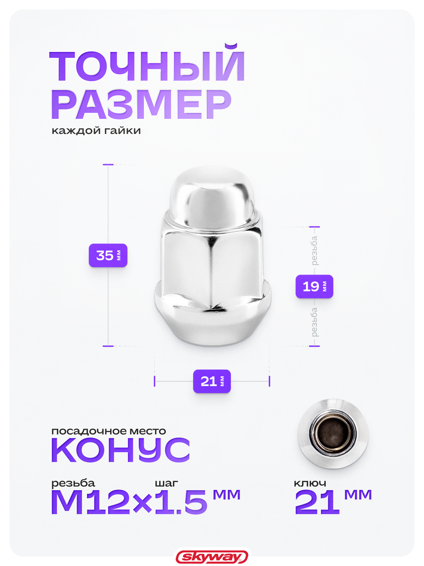 Гайка конус M12х1,50 закрытая 35мм ключ 13/16"(21мм) хром SKYWAY 025 (в компл.20 шт), S10602025/K интересное: