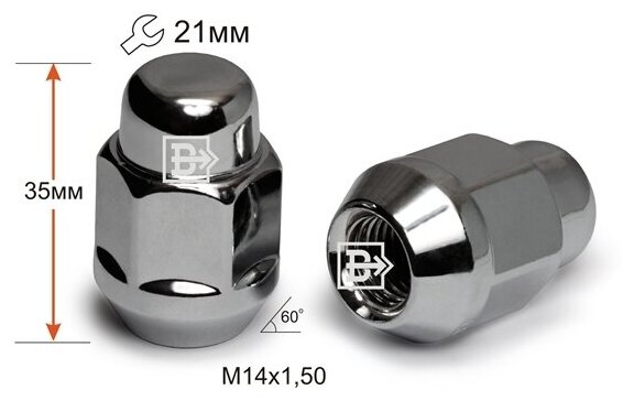 Гайка колёсная закрытая М14х1.5, конус высота 35, ключ 21, хром интересное: