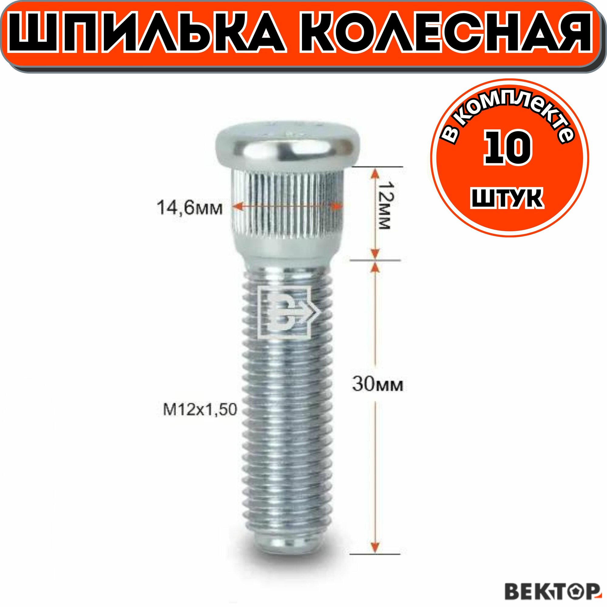 Шпилька колесная забивная M12X1,50 длина резьбовой части 30мм Цинк, подходит на HYUNDAI, KIA, Chrysler, 10 шт интересное: