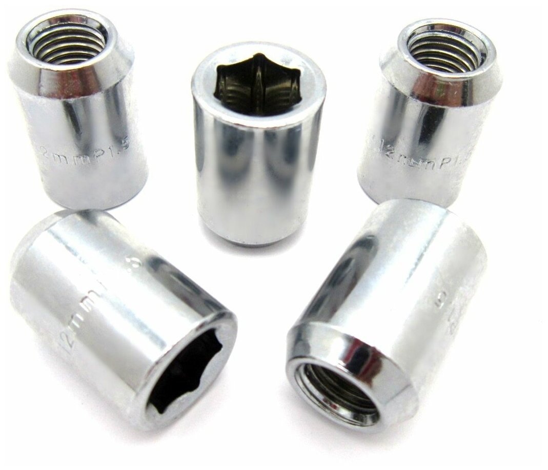 Гайки колесные М12Х1,5 высота 30 мм, диаметр 20 мм, под внутренний шестигранник 12 мм, конус 5 шт. интересное: