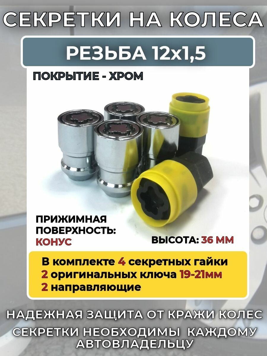 Купить Секретные гайки/ Колесные секретки резьба M12х1,5/ секретки / секретки на колеса