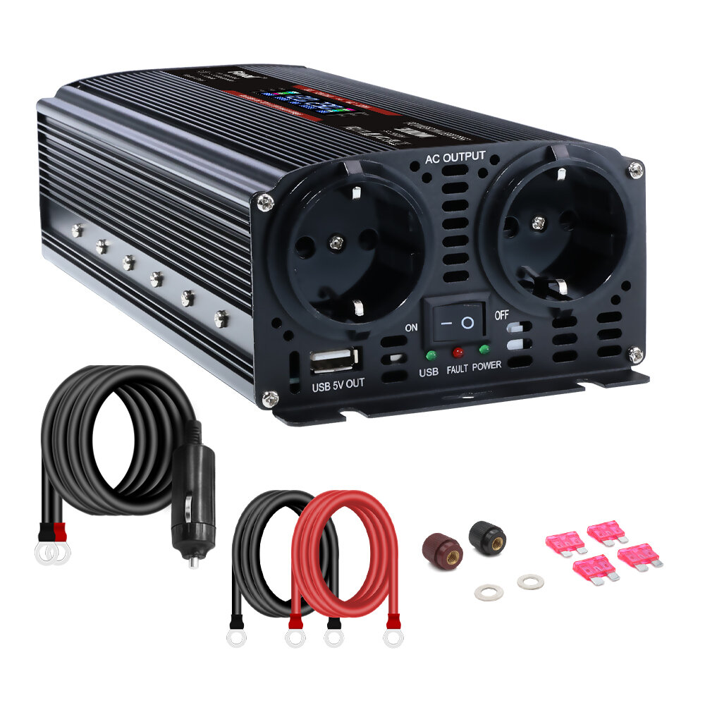 Купить Автомобильный инвертор 3000W, преобразовательное напряжение 12V - 220V, с интерфейсом 2USB, розетка ЕС, ЖК-индикатор