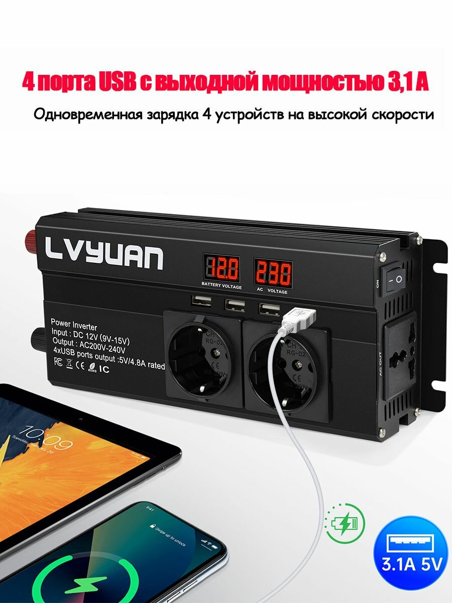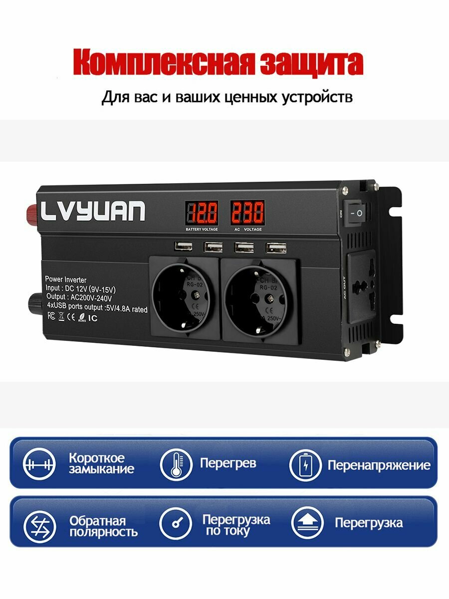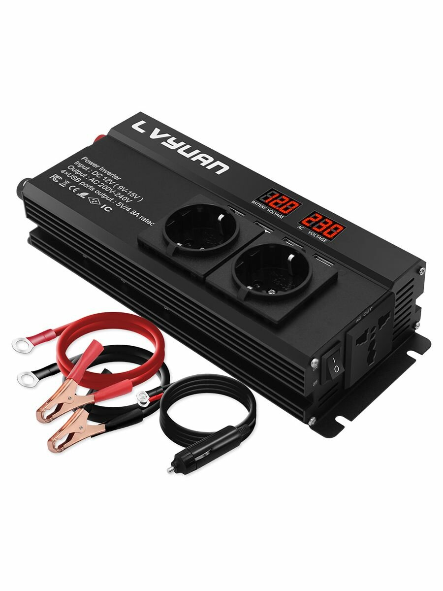 Автомобильный преобразователь напряжения 2000Вт 12В-220В инвертор Lvyuan автомобильный 2000w 12v-220v Power inverter. интересное: