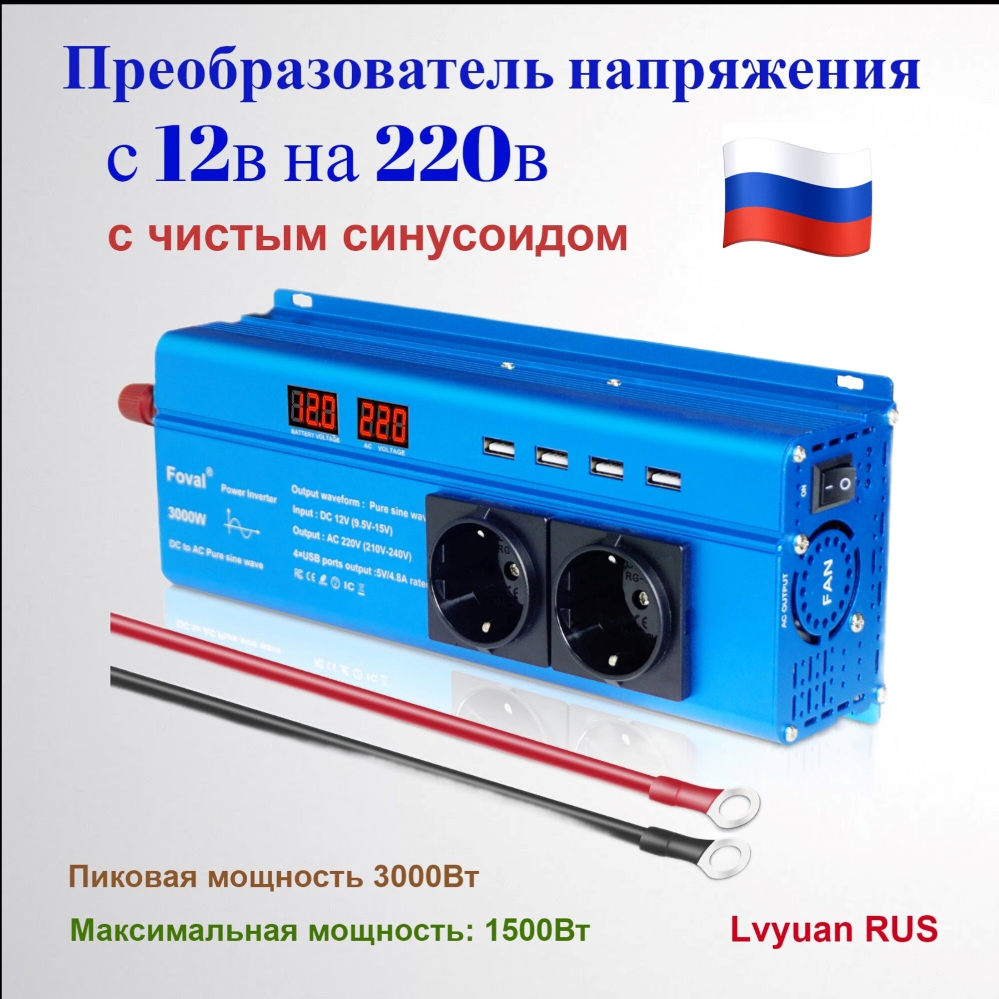 Ниже Вы можете прочитать отзывы на Преобразователь напряжения 12В-220В чистый синус 1500вт инвертор Foval-3000, ознакомится с подробными характеристиками, посмотреть интересные обзоры и фотографии на Преобразователь напряжения 12В-220В чистый синус 1500вт инвертор Foval-3000.