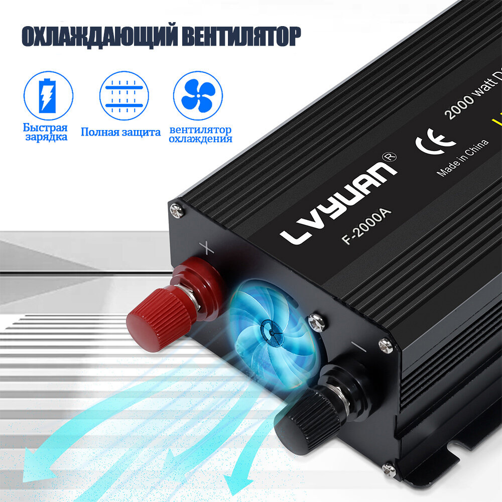 2000 Вт Инвертор мощности 12 В до 220 В 2 USB-разъема для подключения компьютерных вентиляторов и освещения интересное: