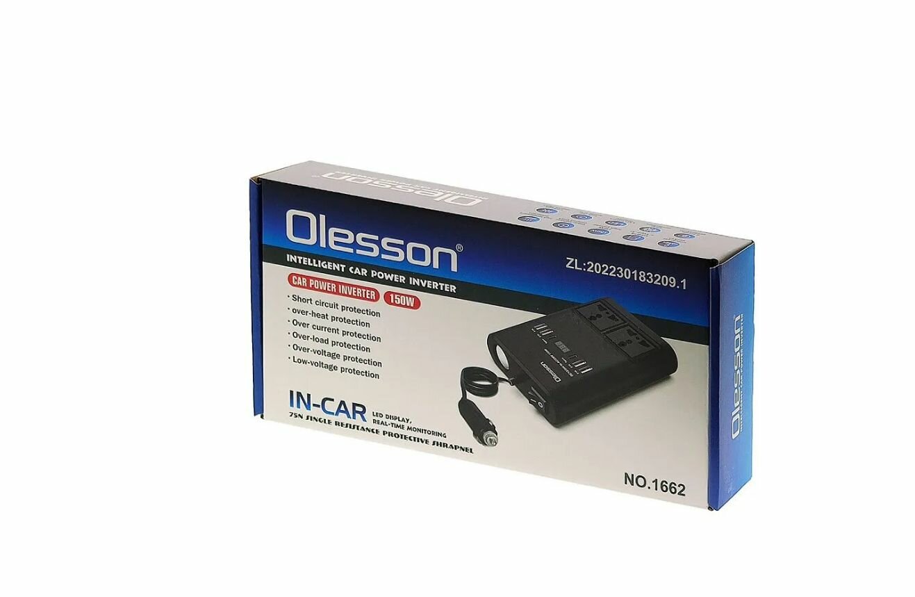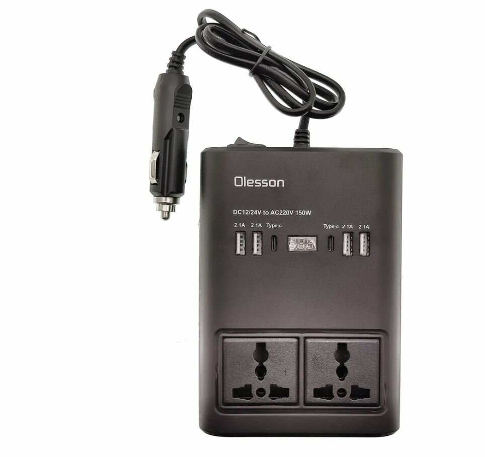 Автомобильный инвертор 12/220V 150W / 4хUSB / 2хTYPE-C OLESSON / дополнительное гнездо прикуривателя интересное: