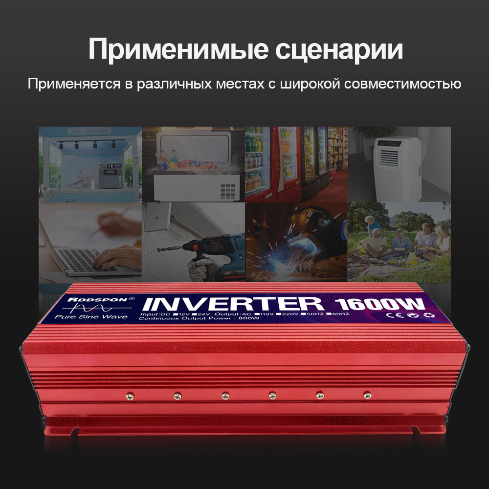 Купить 1600W Автомобильный инвертор12 - 220vRDSPON Чистый синусоидальный преобразователь постоянного токасветовой трансформатор