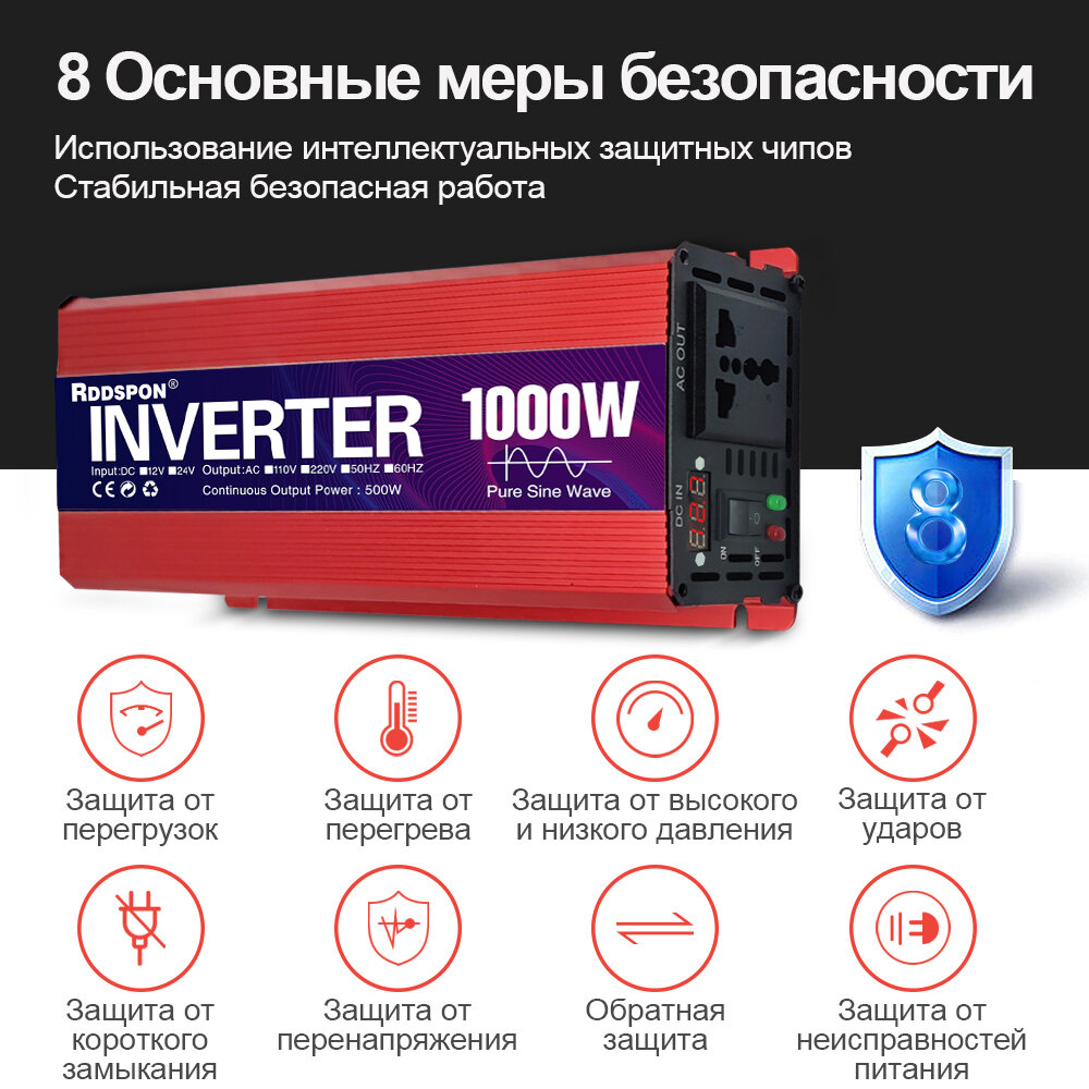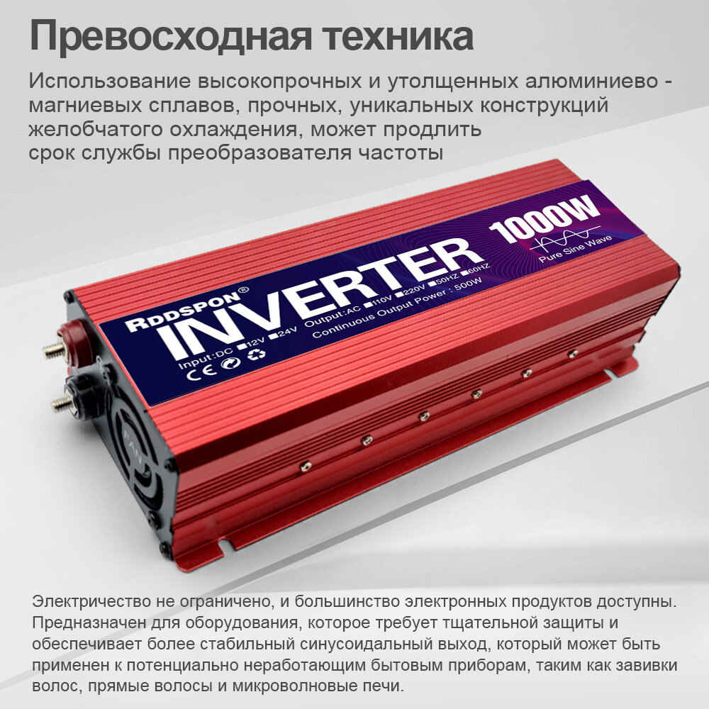 1000 Вт автомобильный инвертор 12v - 220v, чистый синус RDDSPON преобразователь питания солнечный инвертор, освещение