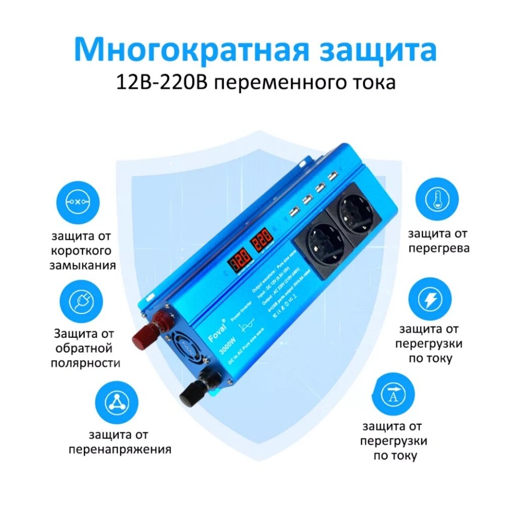 Инвертор 3000Вт, 12-220В, 2 розетки, 4 USB, для грузовиков и автодомов интересное: