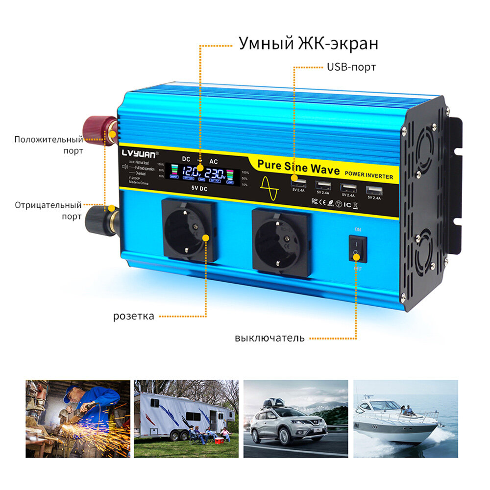 4000 Вт пиковой мощности 12В - 230В 2000 Вт номинальной мощности инвертор чистой синусоиды интересное: