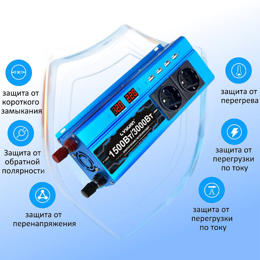 Автомобильный инвертор, чистый синус, 3000Вт, 12-220 В, с разъёмом 4USB, две розетки ЕС интересное:
