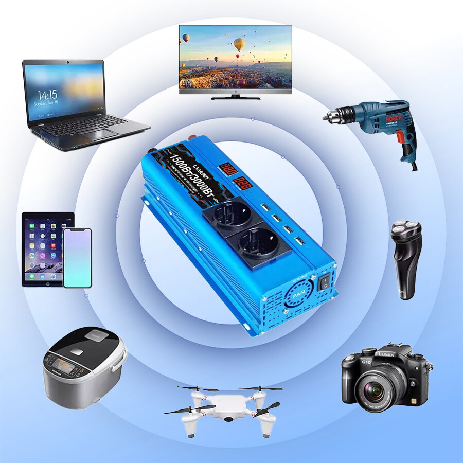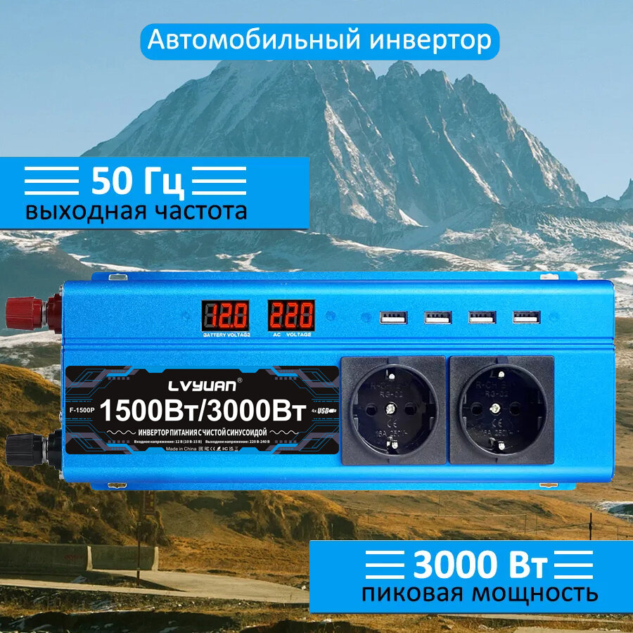 Купить Автомобильный инвертор, чистый синус, 3000Вт, 12-220 В, с разъёмом 4USB, две розетки ЕС