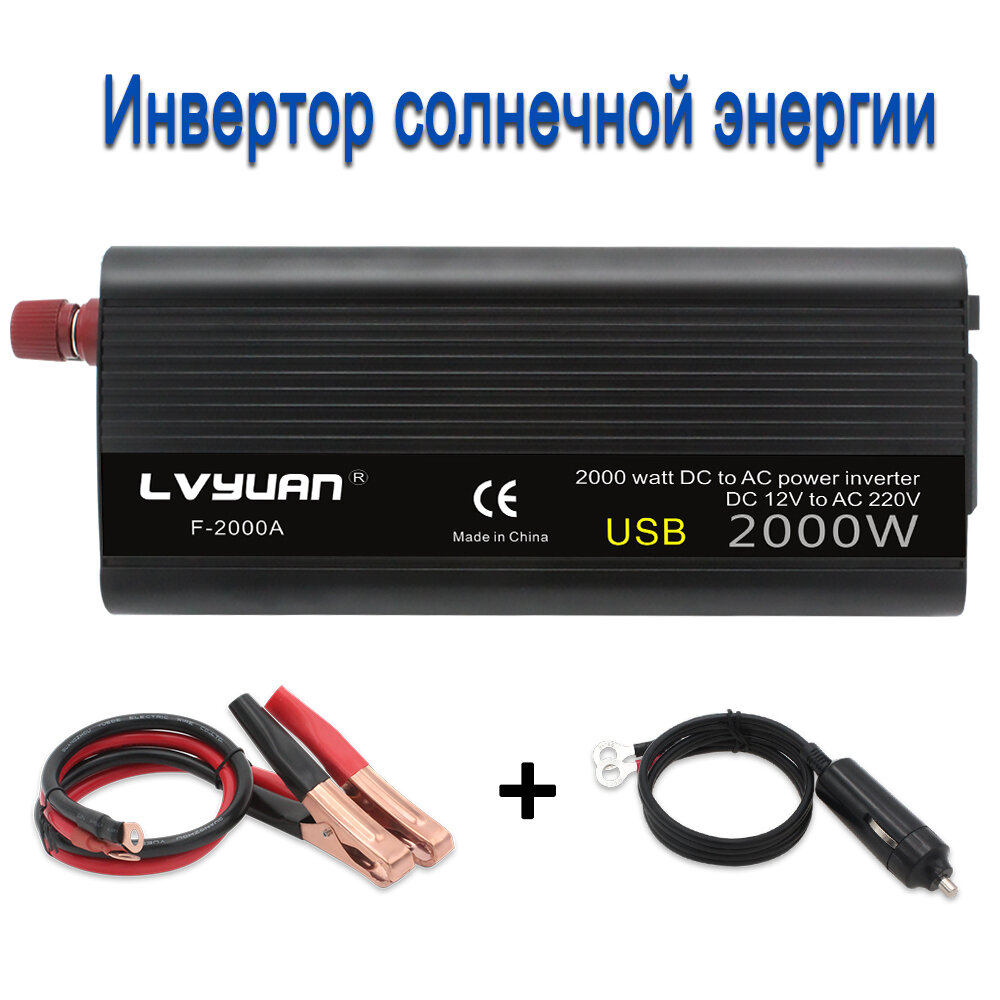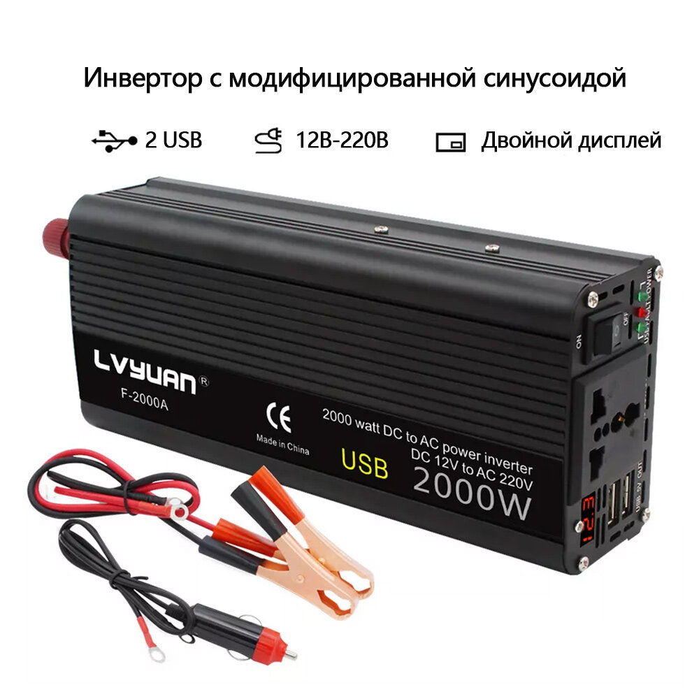 LVYUAN Инвертор автомобильный 2000W 12-220В, 2 USB, универсальная розетка интересное: