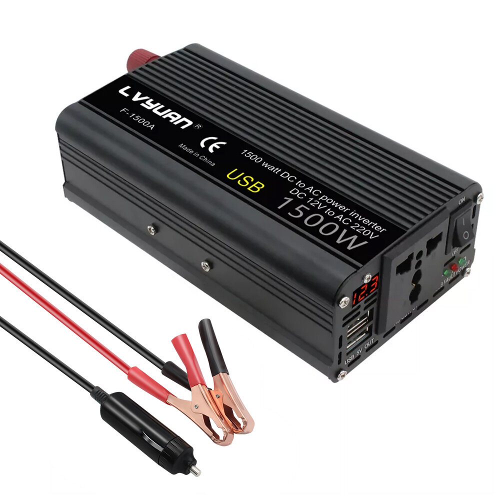 LVYUAN Инвертор автомобильный 1500W 12-220В, 2 USB, универсальная розетка интересное: