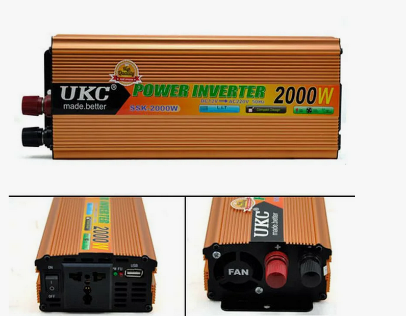 Ниже Вы можете прочитать отзывы на Инвертор UKC, 12-200V, выходное напряжение 220В, мощность 2000Вт, ознакомится с подробными характеристиками, посмотреть интересные обзоры и фотографии на Инвертор UKC, 12-200V, выходное напряжение 220В, мощность 2000Вт.