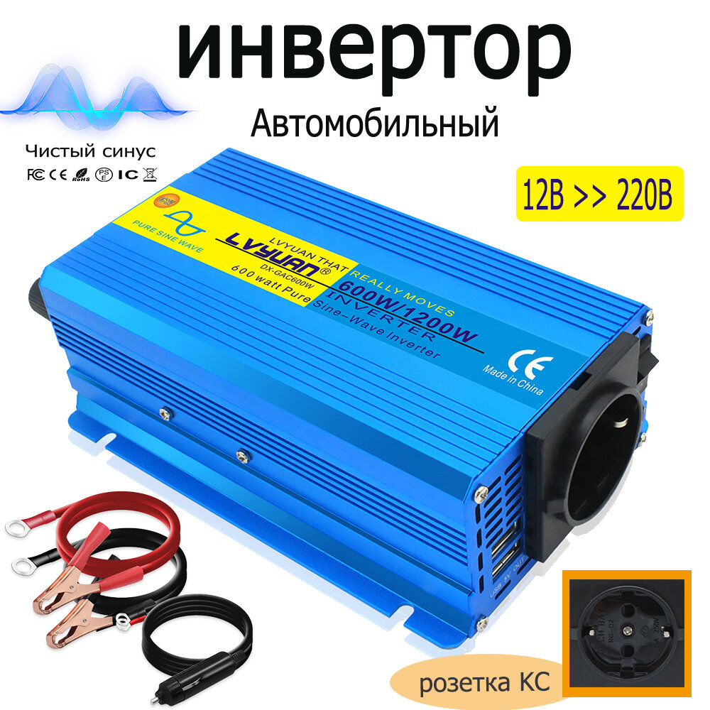 LVYUAN Автомобильный инвертор Чистый синус 1200W, преобразовательное напряжение 12V - 220V, с интерфейсом 2USB, розетка ЕС интересное: