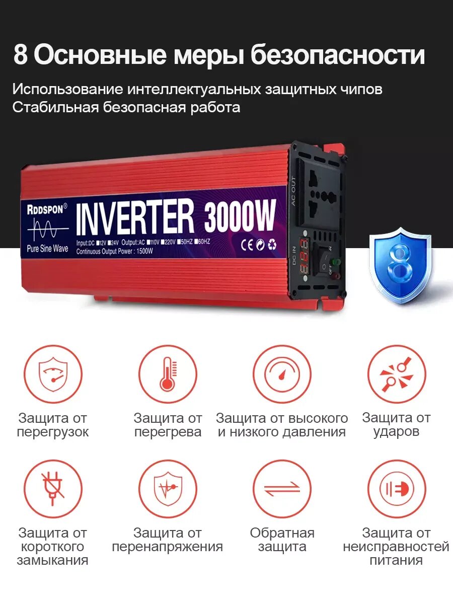 Автомобильный инвертор 1600w, RDDSPON инвертор напряжения 12 - 220v чистый синус Купить инвертор недорого Освещение