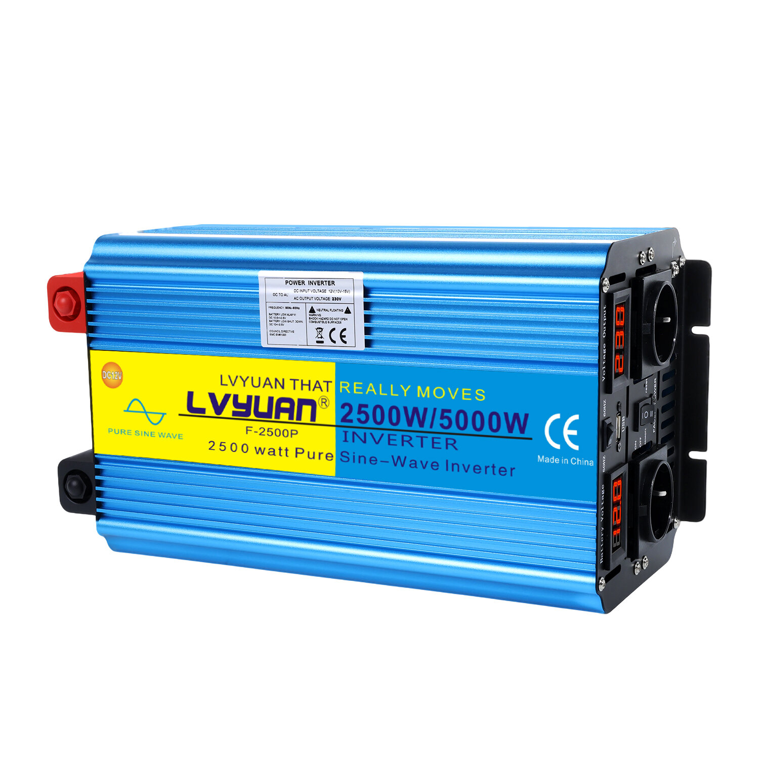 LVYUAN Автомобильный инвертор Чистый синус 5000W, преобразовательное 12V - 220V, розетка ЕС, с USB, Умный светодиод интересное: