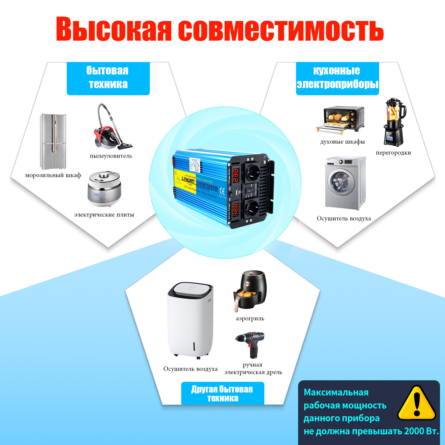 Ниже Вы можете прочитать отзывы на LVYUAN Автомобильный инвертор Чистый синус 5000W, преобразовательное 12V - 220V, розетка ЕС, с USB, Умный светодиод, ознакомится с подробными характеристиками, посмотреть интересные обзоры и фотографии на LVYUAN Автомобильный инвертор Чистый синус 5000W, преобразовательное 12V - 220V, розетка ЕС, с USB, Умный светодиод.