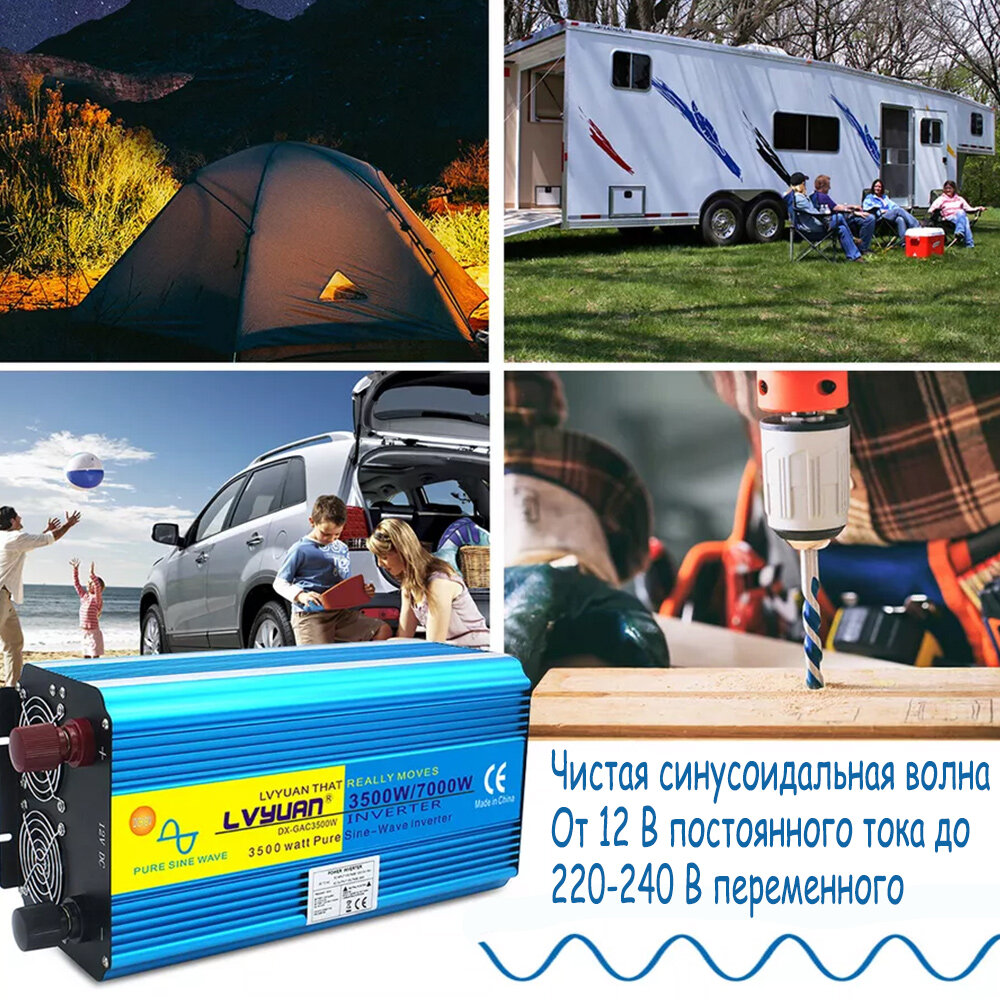 LVYUAN Автомобильный инвертор Чистый синус 7000W, преобразовательное 12V - 220V, розетка ЕС с USB, Умный светодиод интересное: