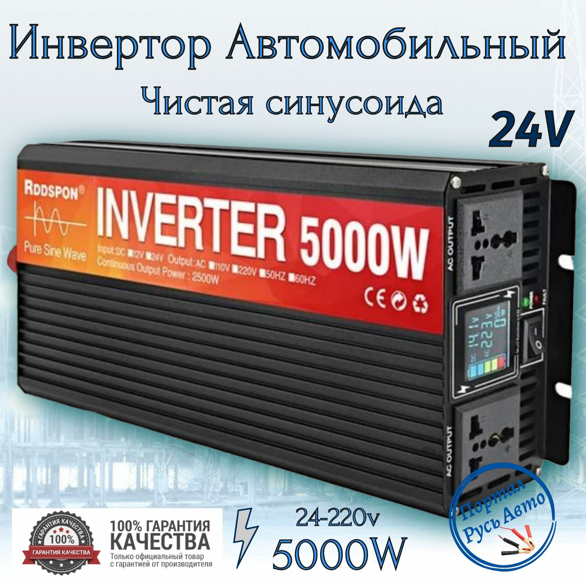 Автомобильный преобразователь напряжения инвертор RDDSPON 5000Вт Внимание 24в-220в! Чистый синус интересное: