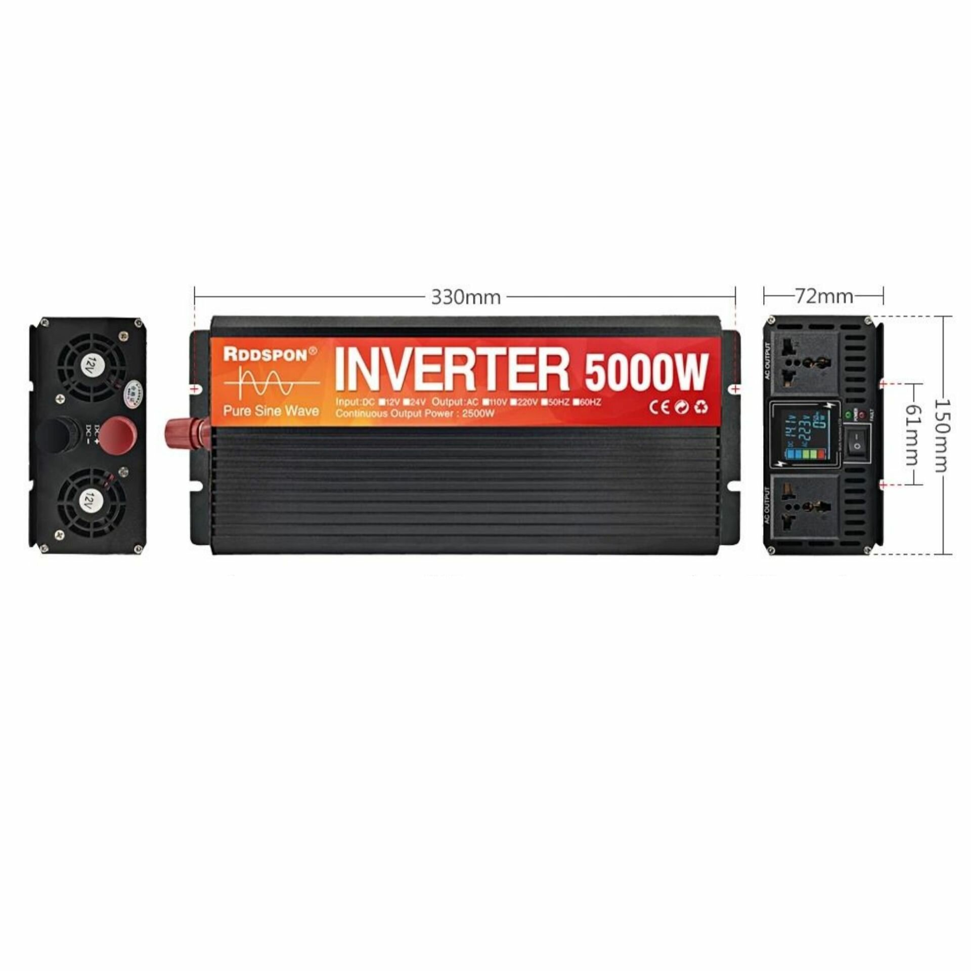 Купить Автомобильный преобразователь напряжения инвертор RDDSPON 5000Вт Внимание 24в-220в! Чистый синус