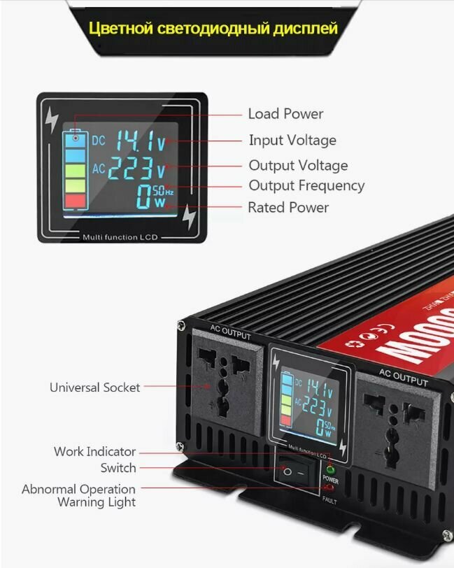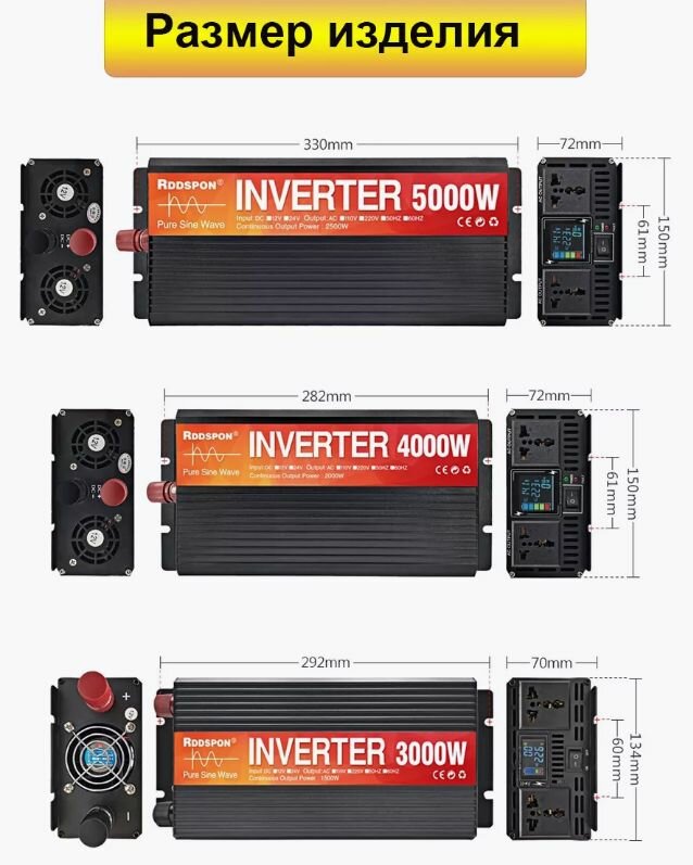 Ниже Вы можете прочитать отзывы на Автомобильный преобразователь напряжения инвертор RDDSPON 3000Вт 12в-220в Чистый синус, ознакомится с подробными характеристиками, посмотреть интересные обзоры и фотографии на Автомобильный преобразователь напряжения инвертор RDDSPON 3000Вт 12в-220в Чистый синус.