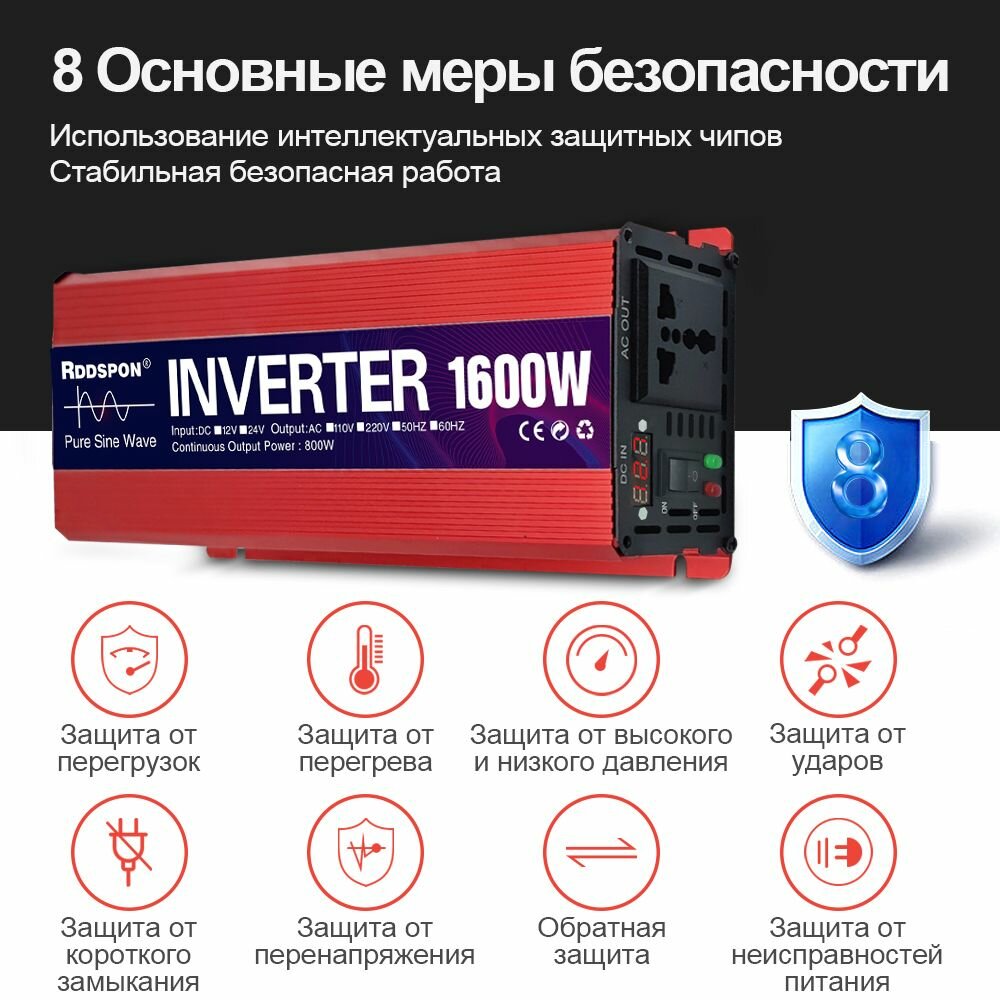 Автомобильный преобразователь напряжения инвертор 1600 Вт 12В-220В , 1600w 12v-220v Power inverter Чистый синус. Чистая, немодифицированная синусоида. интересное: