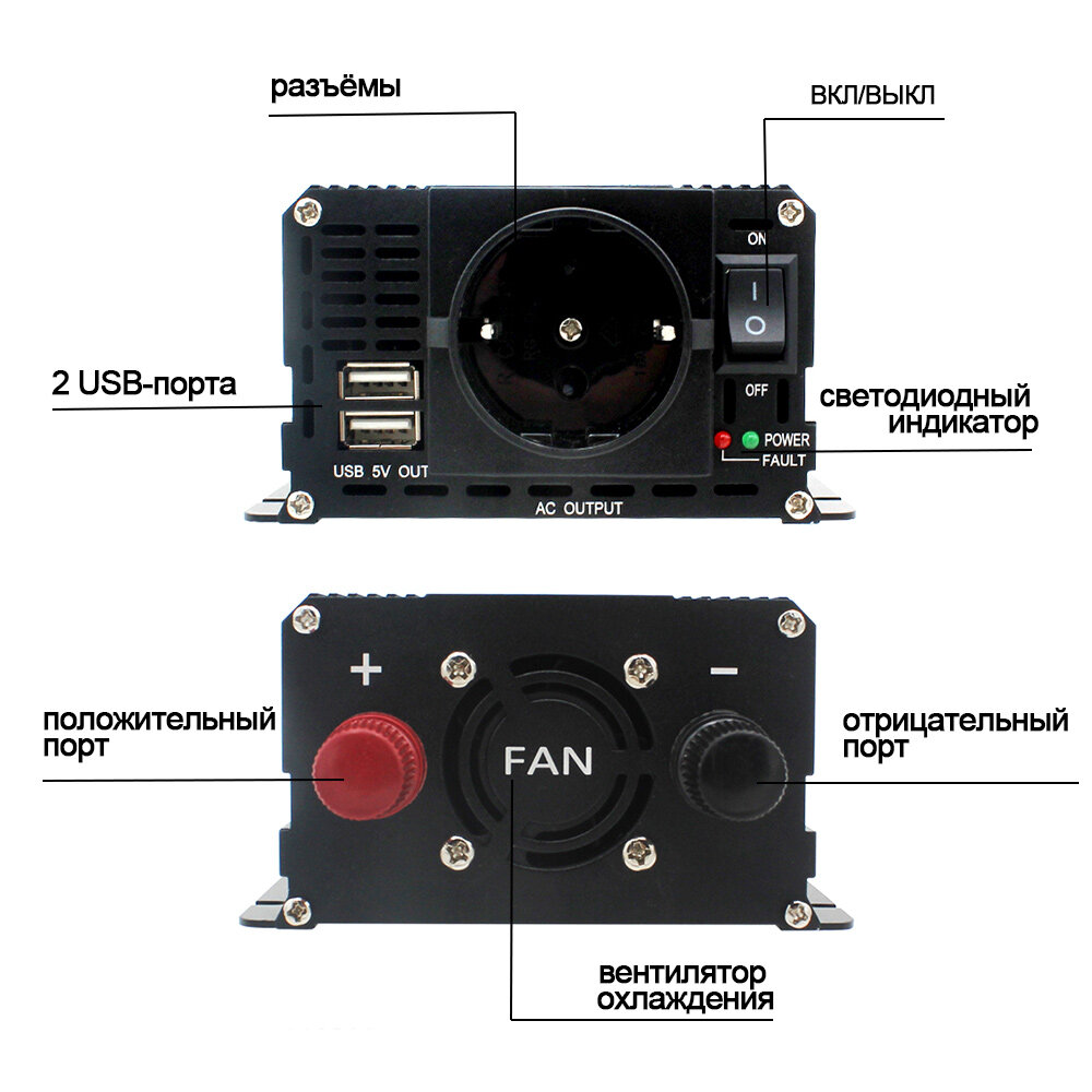 Инвертор 12В/220В с 2 USB-портами для зарядки мобильных устройств интересное: