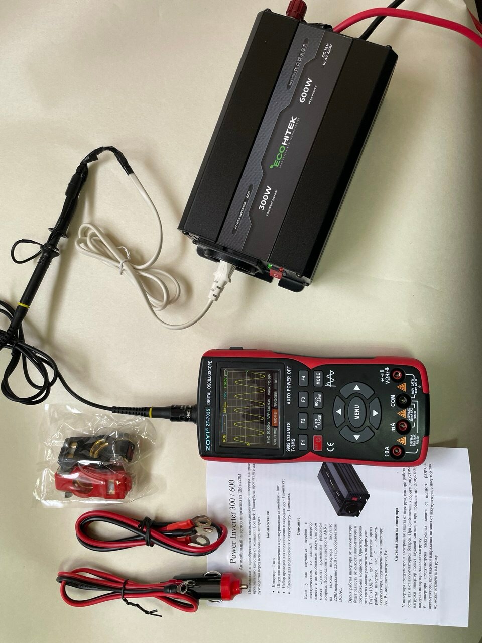 Инвертор автомобильный 12 220, 600Вт от EcoHitek. (пост нагрузка до 300 Вт). Чистый синус. Подключение приборов, эл. инструмента, котла отопления интересное: